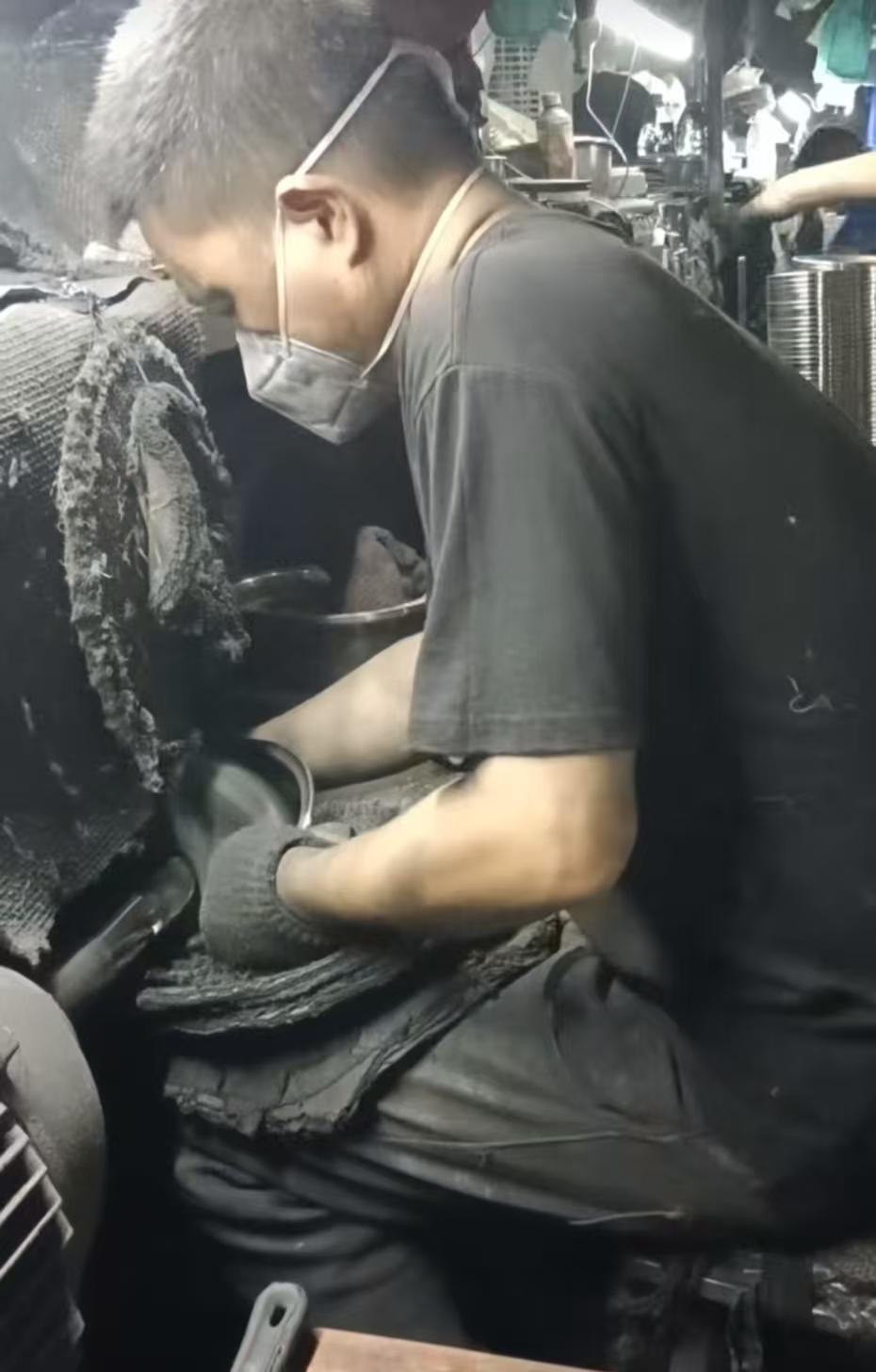杨先生称,因工厂大小不同,有的厂里安装有空调,但有的只有风扇,部分厂房里的温度达到38℃,工作中为了散热,他们有时还会把衣服剪开。