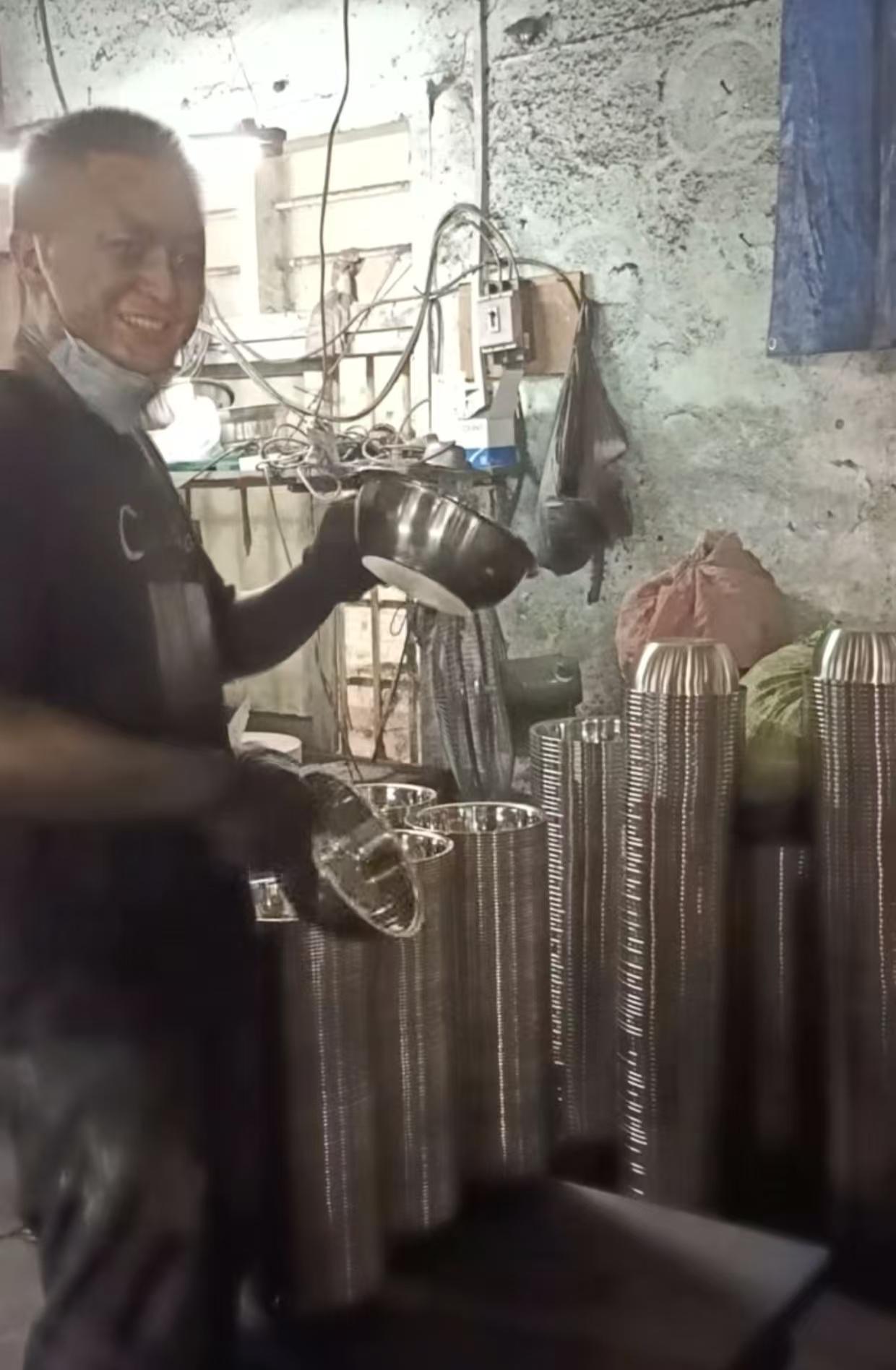 “我是1983年生人,妻子也马上40岁,之前是抛铁锅,干了十年,后来年龄大了,一口锅五六斤,感觉费力,现在主要抛光碗、盆一类的物品。”