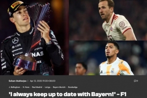 乔治-拉塞尔:非常期待凯恩获得德甲冠军 已经邀请贝林来看F1
