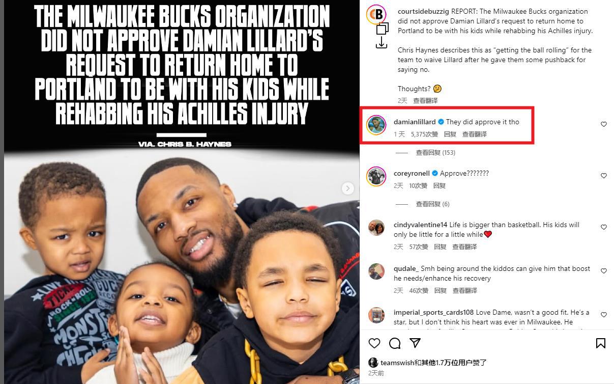 美媒courtsidebuzzig转发了这一报道,但是利拉德在评论区辟谣:“不过他们还是批准了。”